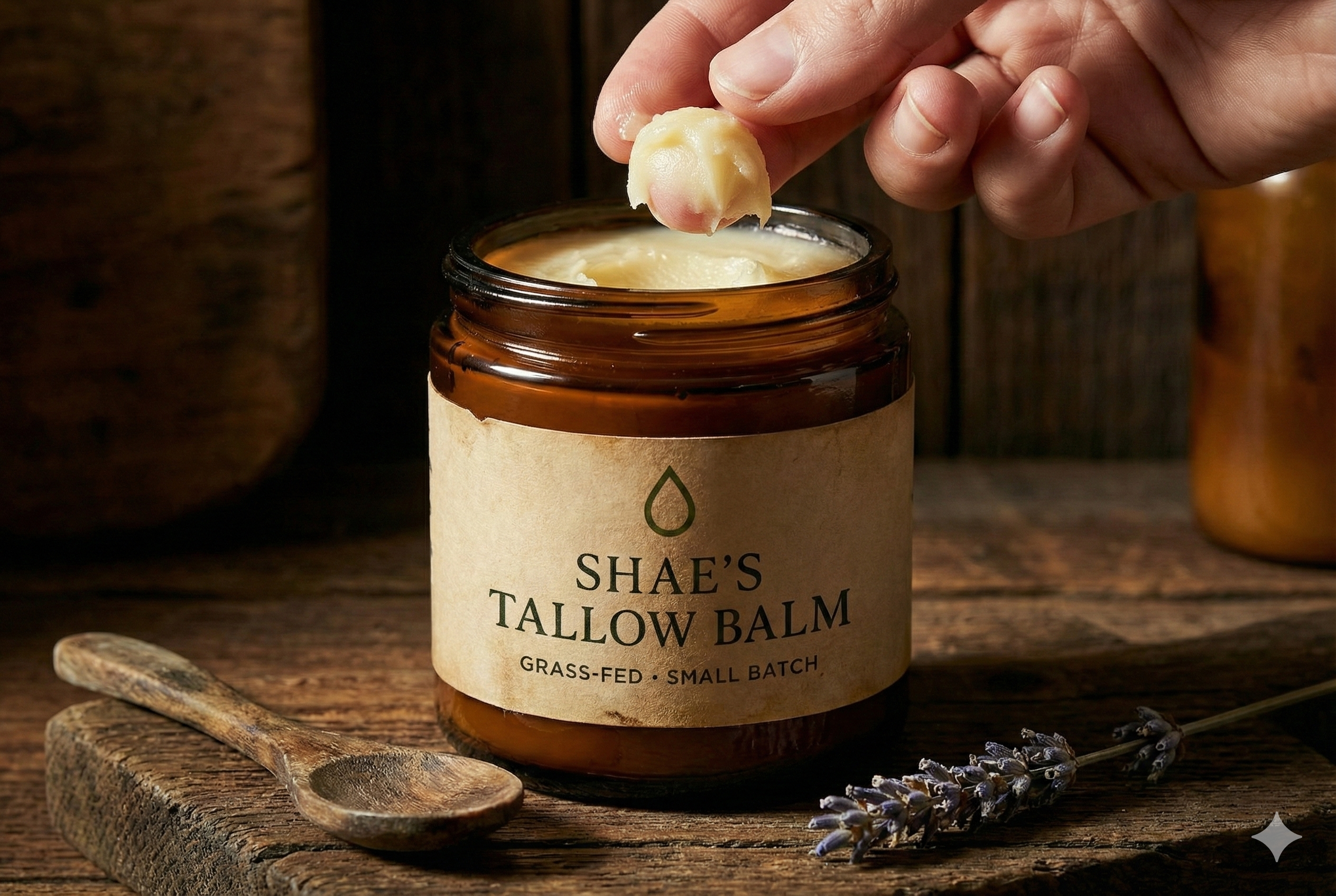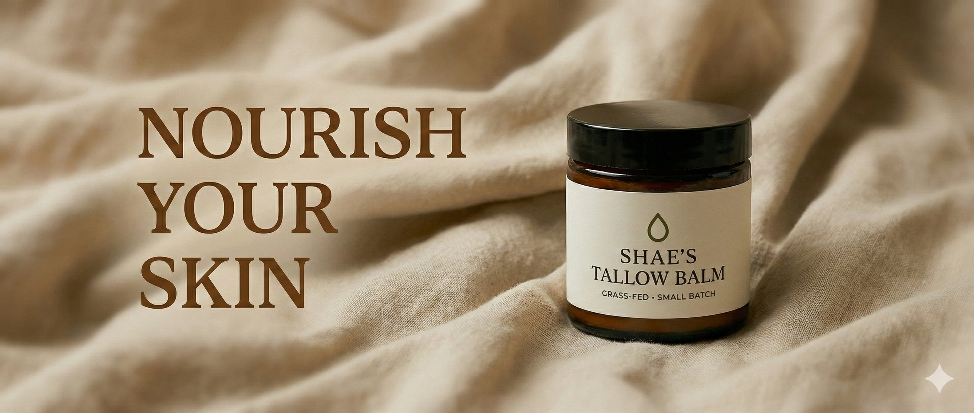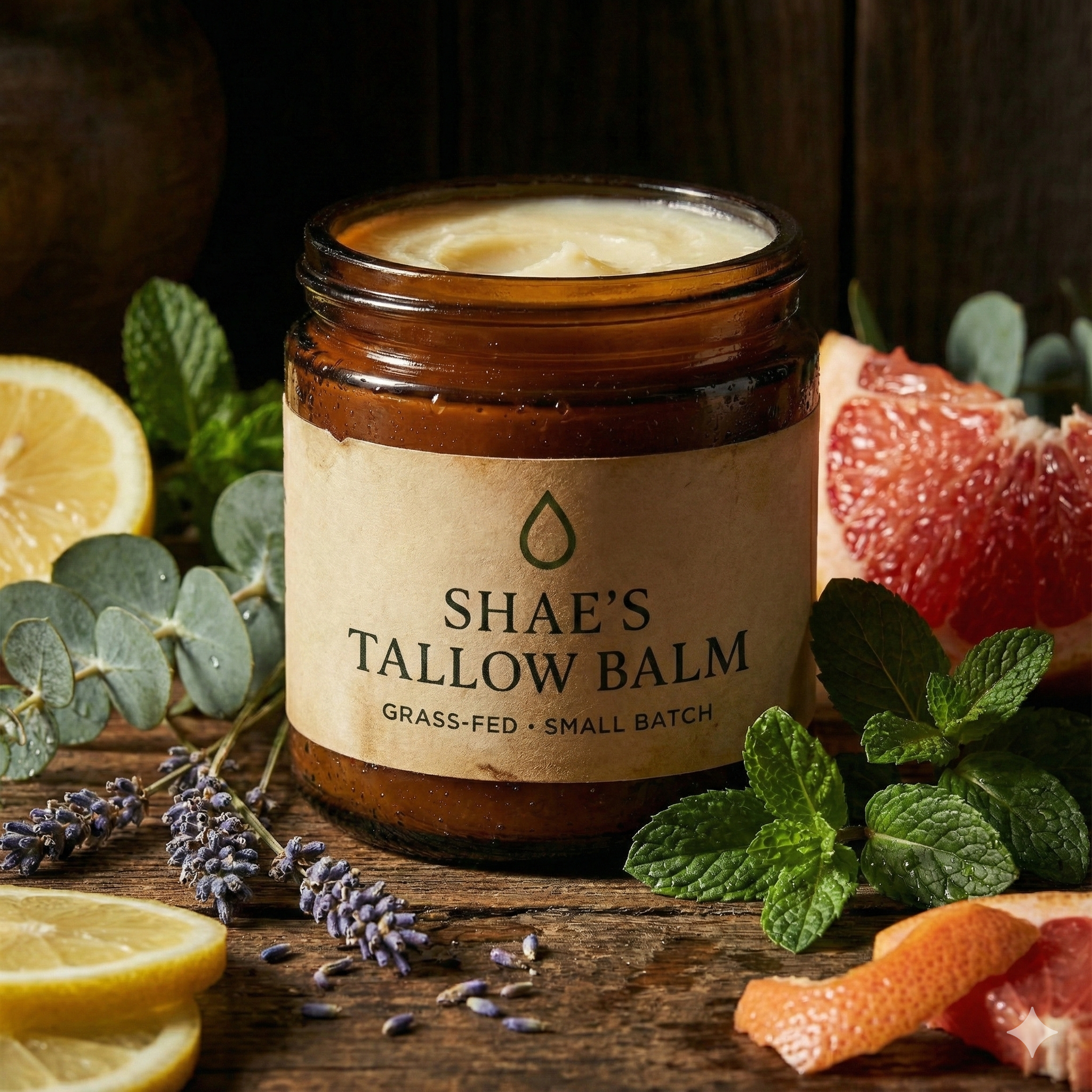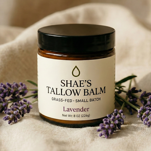 Your ancestors used tallow for skin care long before modern chemical formulations. Grass-fed tallow mirrors human skin oils, delivering fat-soluble vitamins A, D, E, and K plus CLA and palmitoleic acid. Shae’s Tallow Balm preserves that original simplicity. No added oils. No synthetic compounds. Only pure grass-fed tallow, with optional therapeutic-grade essential oils.